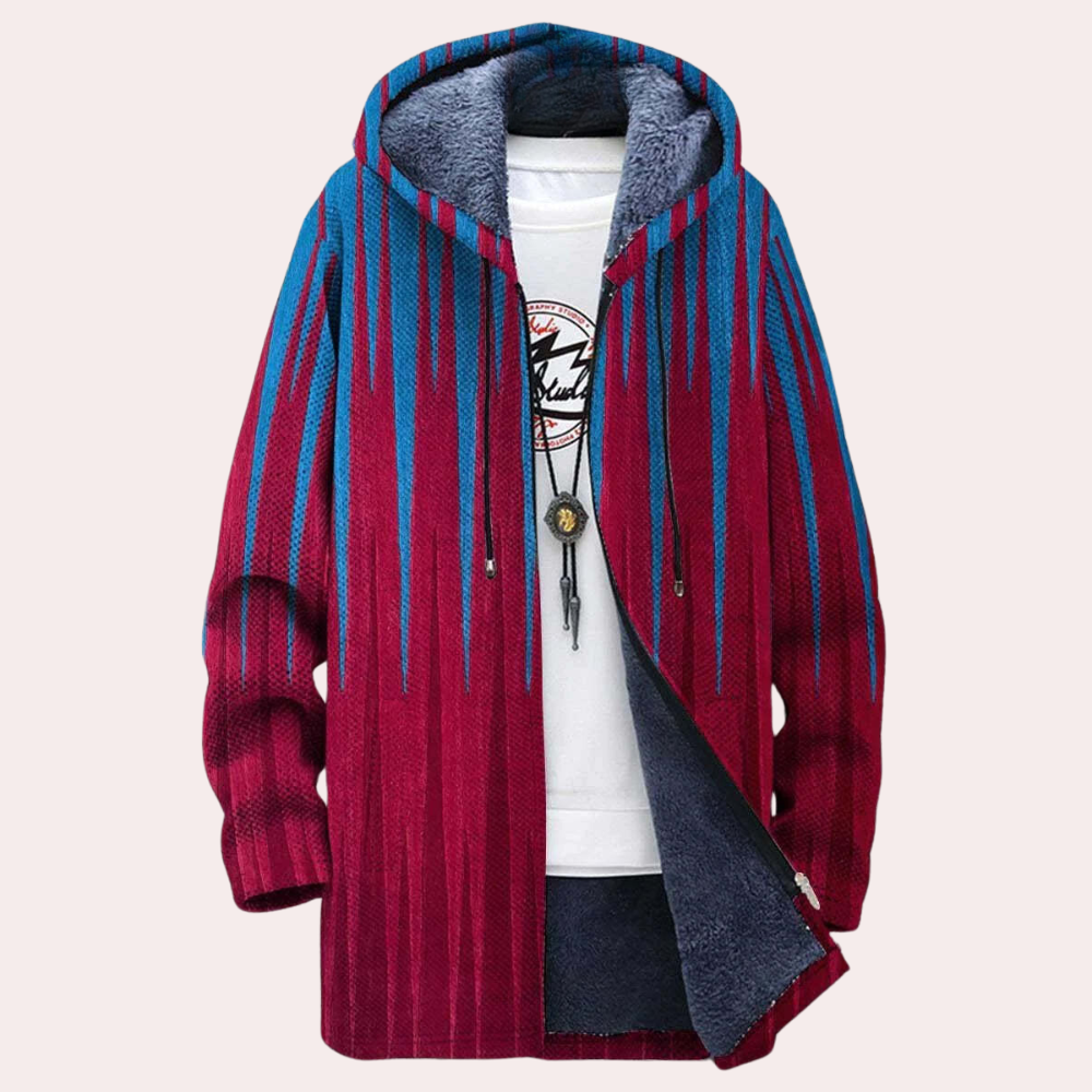 Arlo Kleurrijke herenjas is het perfecte kledingstuk voor kille dagen en gezellige nachten. Gemaakt van de fijnste mix van zacht polyester en ademende materialen, die ongeëvenaarde warmte, comfort en stijl biedt. Het tijdloze ontwerp heeft een losse pasvorm, waardoor het veelzijdig is voor elke gelegenheid.