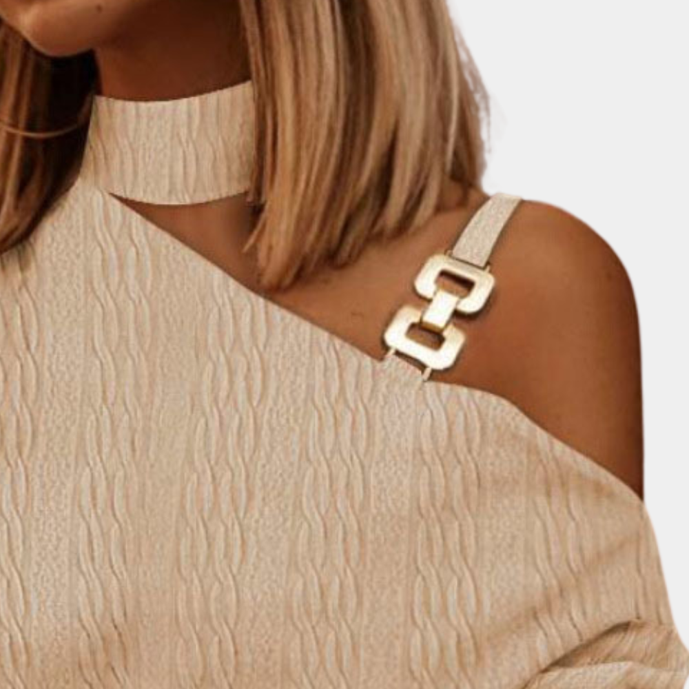 Verfijnde schouderloze snit die zorgt voor een elegante en onderscheidende look.